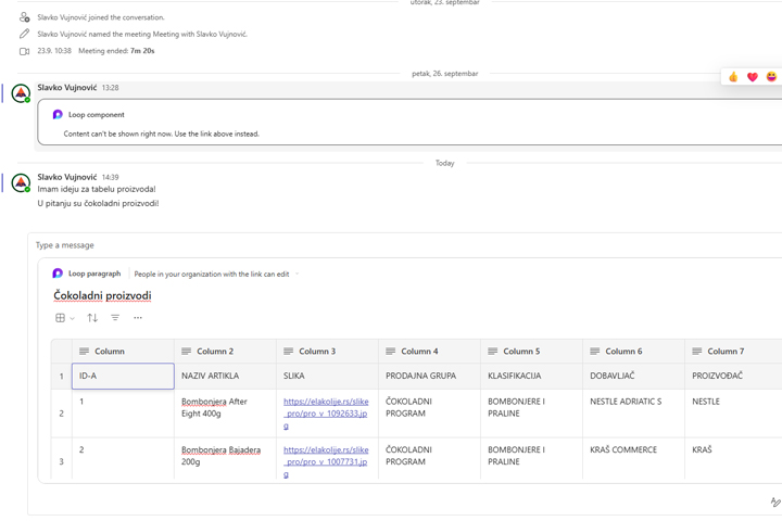 You can also access Loop pages with the help of other applications from the Microsoft 365 ecosystem such as: Microsoft Teams, Outlook, OneNote, Whiteboard… For example, if you’re in a Teams chat with colleagues, you can start a conversation and add a Loop component or page. You can work on it simultaneously by adding or correcting tables, adding images, etc. All pages created in this way are stored in Loop workspaces, and ideas that would be lost in the chat are recorded somewhere.