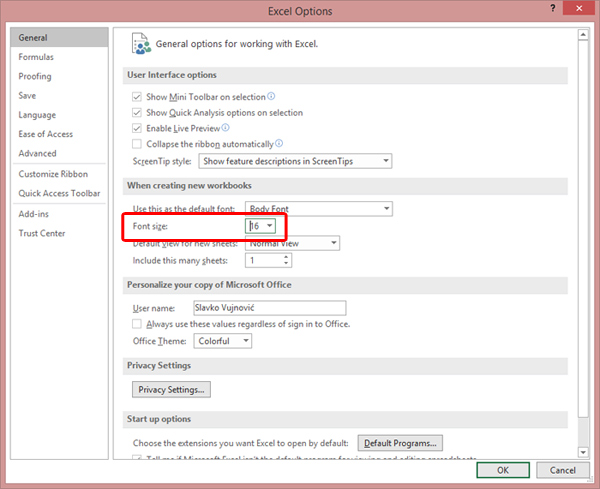 First of all, how do you zoom the text? In the lower right corner of the Excel window, there is a slider whose swipe to the right increases the size of content displayed on the screen, and swipe left to decrease it. To the right of the slider is a label showing the degree of magnification. Default value is 100%. If you reduce the text e.g. for 20% here will be 80%, and if you increase it by the same amount you will see the value 120%. You can also zoom in and out content of the screen using the scroll key on your mouse while, at the same time, you press CTRL key on your keyboard. Try it …