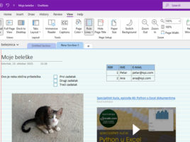 OneNote is used to take notes. It comes as a free desktop app with Windows, but also as part of the Microsoft 365 suite or a web service. Notes are captured in notebooks, and each of them can have multiple sections and parts. In notes, we can write down text, keep To Do lists, add images, video or audio recordings, links… Notebooks are stored as documents in  the OneDrive repository, which means that notes can be easily accessed from any device.