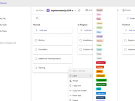 Planner is a service for managing simple projects. It comes as part  of an Microsoft 365 subscription, and is reminiscent of tools like Jira or Trello. It is used to assign and track tasks within a team using the Kanban board interface, and is ideal for teams that manage task-based agile projects, where they can attach files, add comments, track progress through charts, etc.