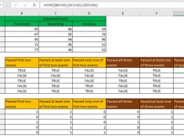 With the exception of the IF function, Excel has multitude of logical functions that are often unfairly neglected. The AND, OR, and XOR functions are also used to test the one or more conditions. The first returns TRUE if all conditions are met, the second if at least one of the conditions is met, and the third is used to examine cases where at least one but not all conditions are met. These functions can be used to analyze student performance on exams.