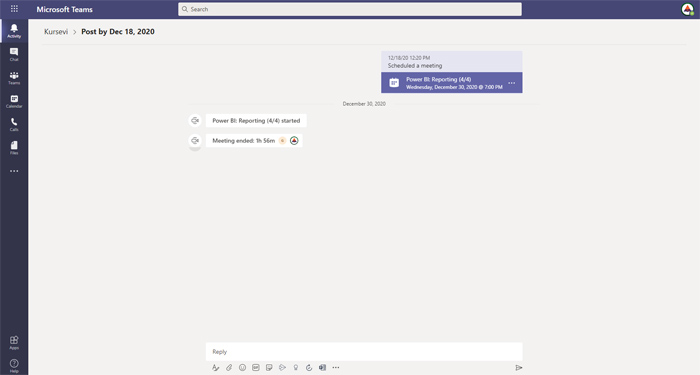 Meni Activity sadrži informacije o događanjima unutar timova i kanala čiji ste član. Tu možete da vidite koliko puta su vas pomenuli u tim timovima i kanalima, odgovore na vaše objave, objave koje ste lajkovali, informacije da ste dodati u tim ili postali vlasnik tima, predložene i popularne objave. Ovo je zgodno mesto da se informišete šta sve ima novo ako neko vreme niste koristili Microsoft Teams…