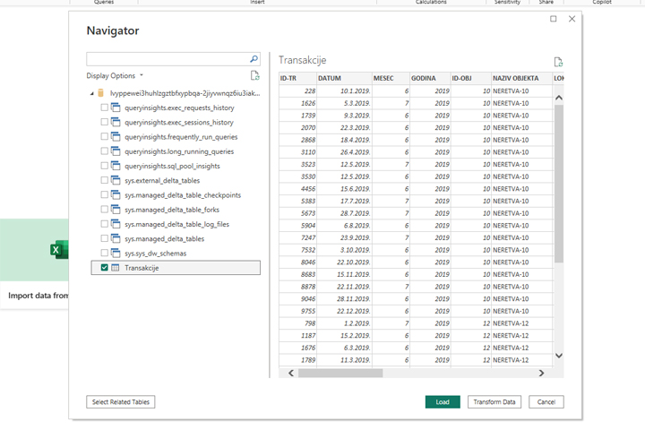 Zatim odaberite tabelu Transakcije i kliknite na Load.