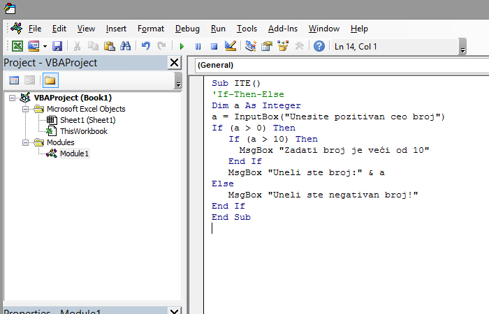 Hajde da počnemo sa prikazom najjednostavnijeg načina primene If-Then strukture.