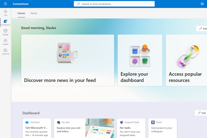 Velike kompanije su nekada imale oglasne table koje su se doba digitalizacije preselile na Intranet stranice- interno dizajnirane veb sajtove koji imaju za cilj da obaveštavaju zaposlene o novostima. Npr. kada će da se kupuju polutke preko Sindikata! Viva Connections ima za cilj da, kroz personalizovanu oglasnu tablu, prikaže novosti, zadatke i ostale zanimljivosti.